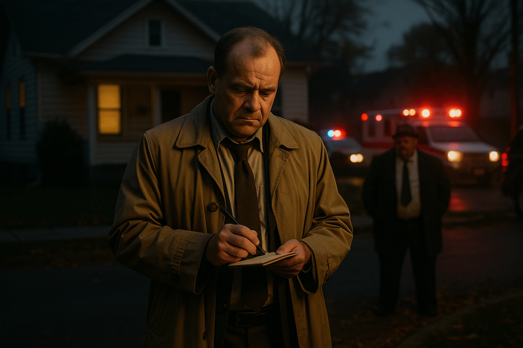 He found a claw hammer and pried the door nails out of the hinges. He lifted the door off the hinges and the smell overwhelmed him. A hardened Detroit or Chicago detective wouldn’t have flinched, but this was Mecosta County Michigan. Backwater, backwoods, back to the good old days, tranquil country living. Murder wasn’t rare, it was unheard of, the last murder happened in the 1980s.